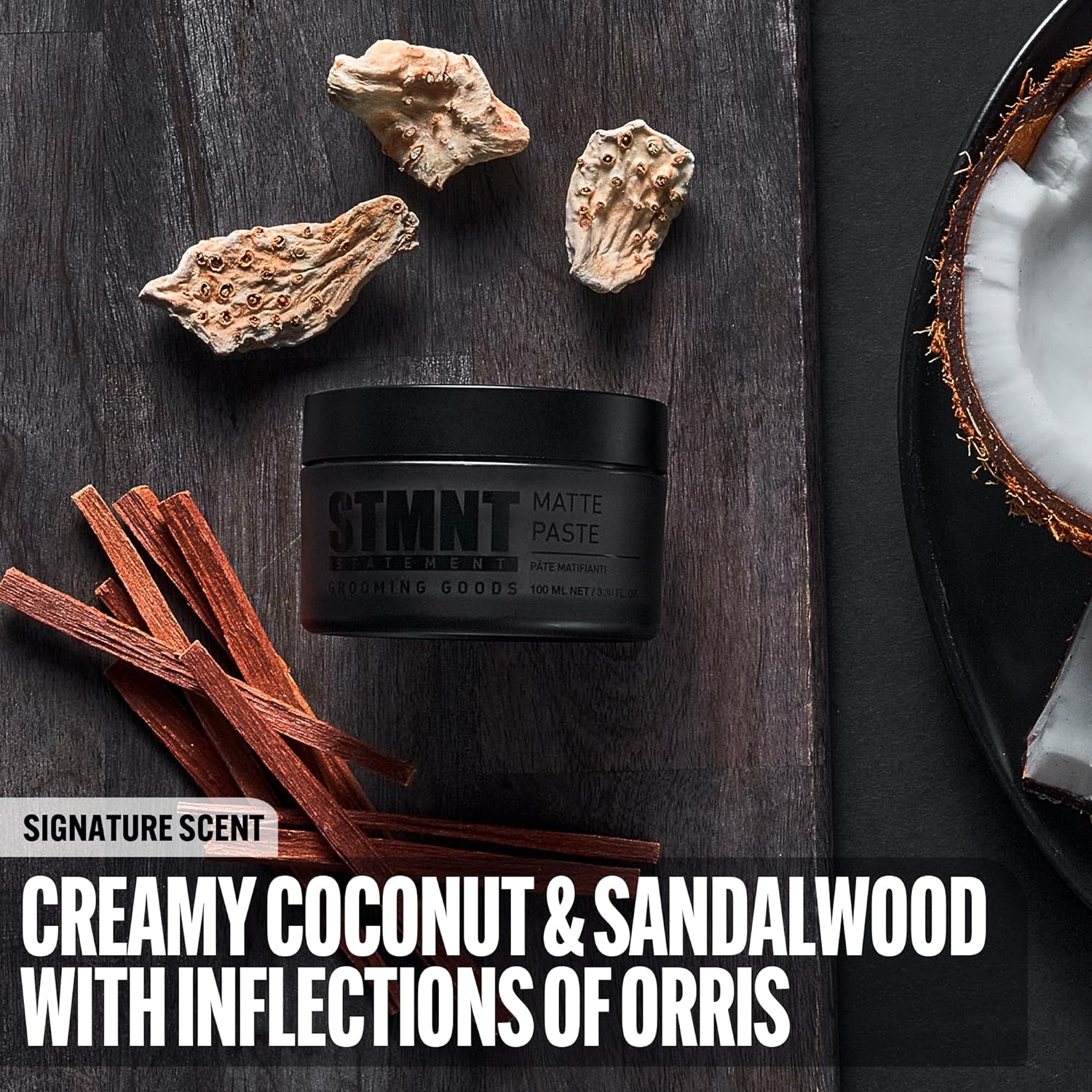 Use on dry or damp hair for easy styling with strong hold control. The non-greasy formula delivers dry definition with long-lasting texture and a matte finish. Want it less matte? Mix with STMNT Shine Paste. Julius Cvesar’s signature scent: a twist of creamy coconut and sandalwood with inflections of orris.